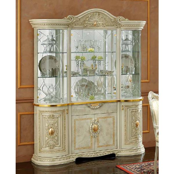 イタリア ガラス キャビネット カップボード 飾り棚 アンティーク ヨーロピアン イタリア レオナルド 4ドア キャビネット カップボード 食器棚