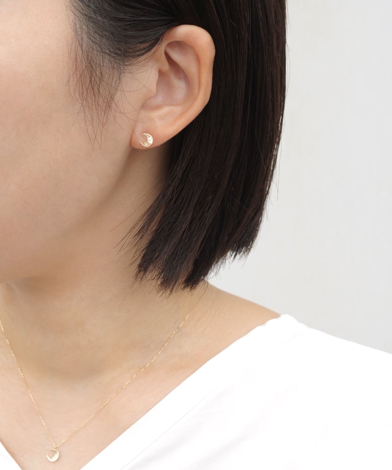 「anq.」K10.ダイヤ moonスタッドピアス イエローゴールド 10金 anq.】K10・彫り留めムーンピアス | KU-CROISSANT 公式オンラインストア