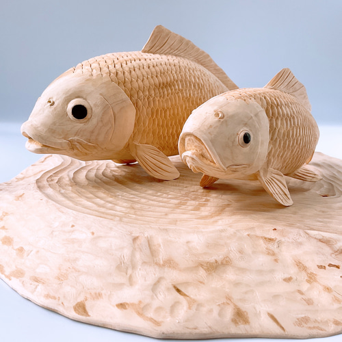 | メーカー | 【美品】大型 魚 彫像 オブジェ 置物 インテリア 工芸品 美術品 A3218 魚「コイの親子」の置物 |