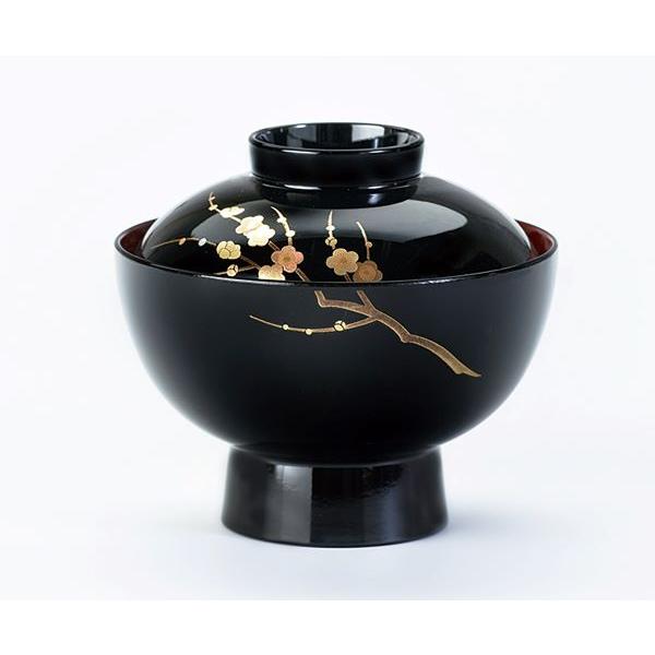 - キッチン・食器 > 食器 > デッドストック!!上質内朱黒漆に極上梅文沈金の映える雑煮椀2点(検木曽漆器沈金椀 雑煮椀 煮物椀 黒内朱塗り 新梅 会津漆器 お好み椀 蓋付き 会津塗り 和