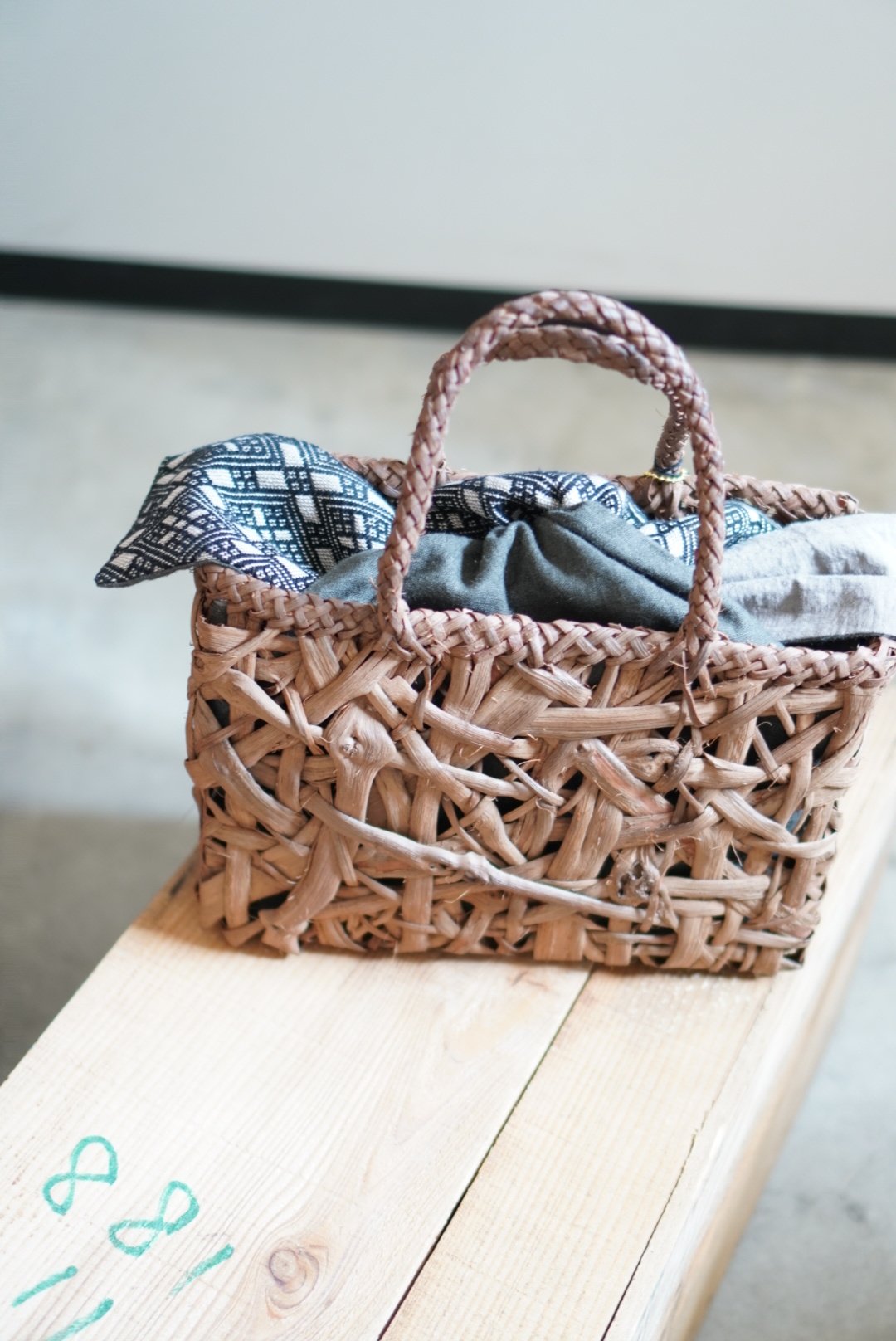 | メーカー | 山葡萄籠➕すれ防止布型染め雪ん子格子縞木刺し子 |